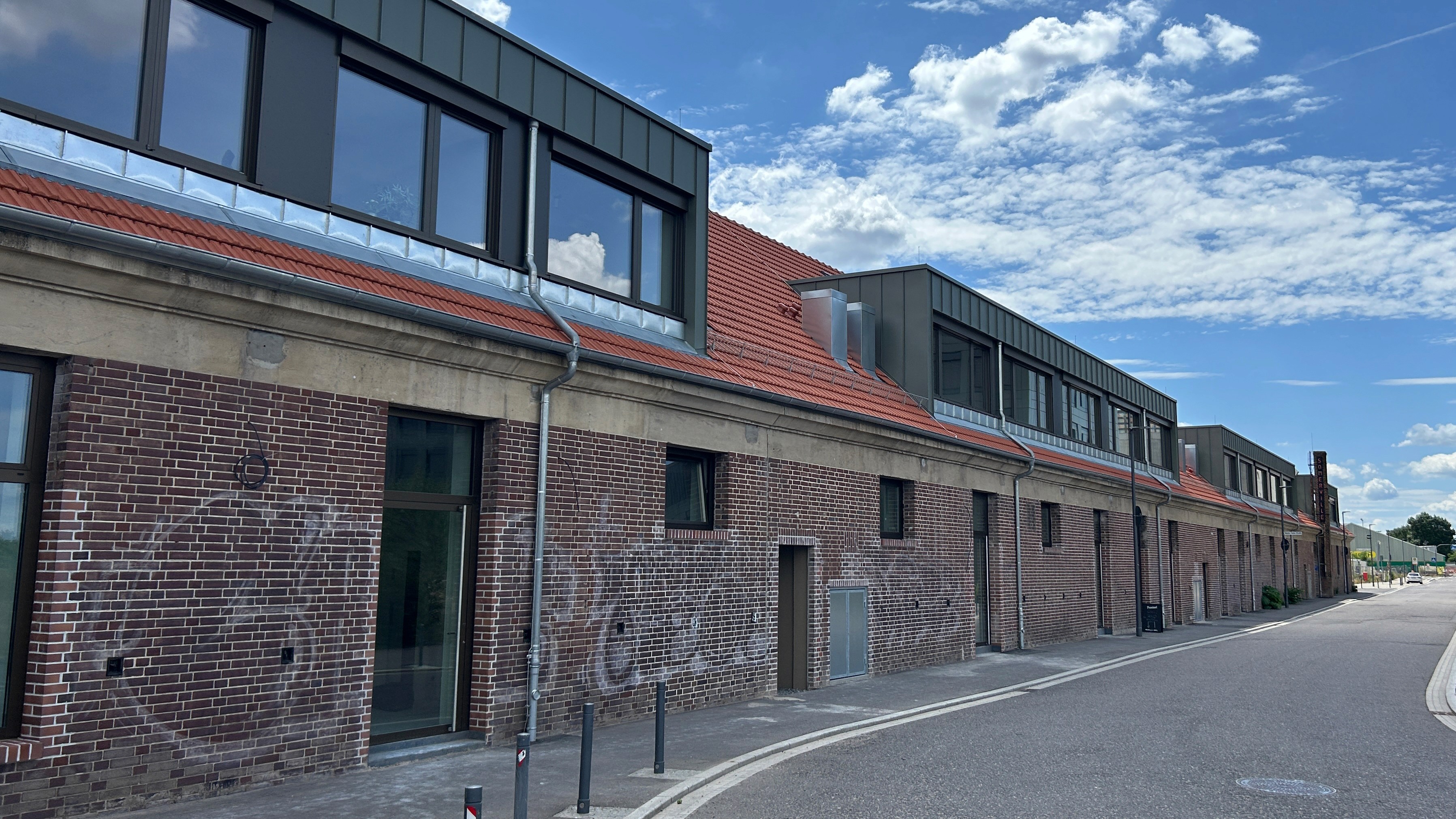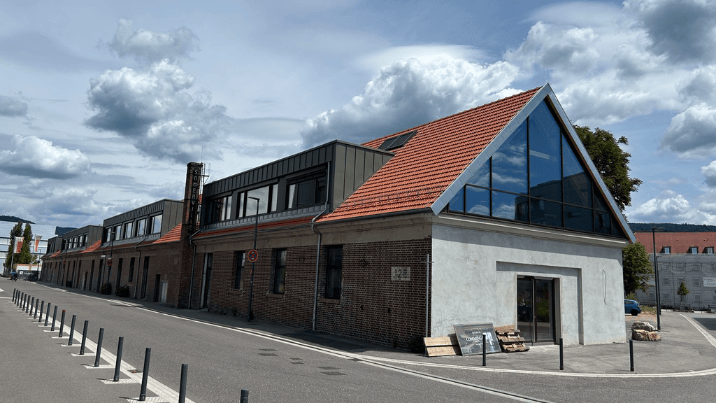 Das innovativ umgebaute Backsteingebäude sorgt mit seiner einzigartigen Architektur für eine einladende Atmosphäre zwischen den Neubauten auf dem Campus.